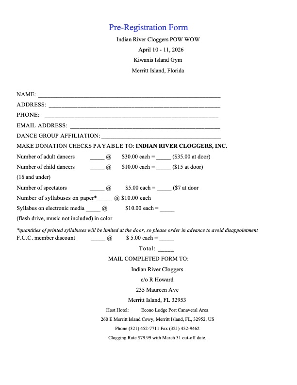 To register as a dancer, spectator, or vendor, please contact us at info@indianrivercloggers.org