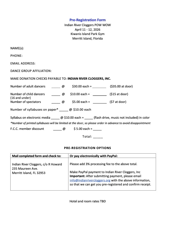 To register as a dancer, spectator, or vendor, please contact us at info@indianrivercloggers.org